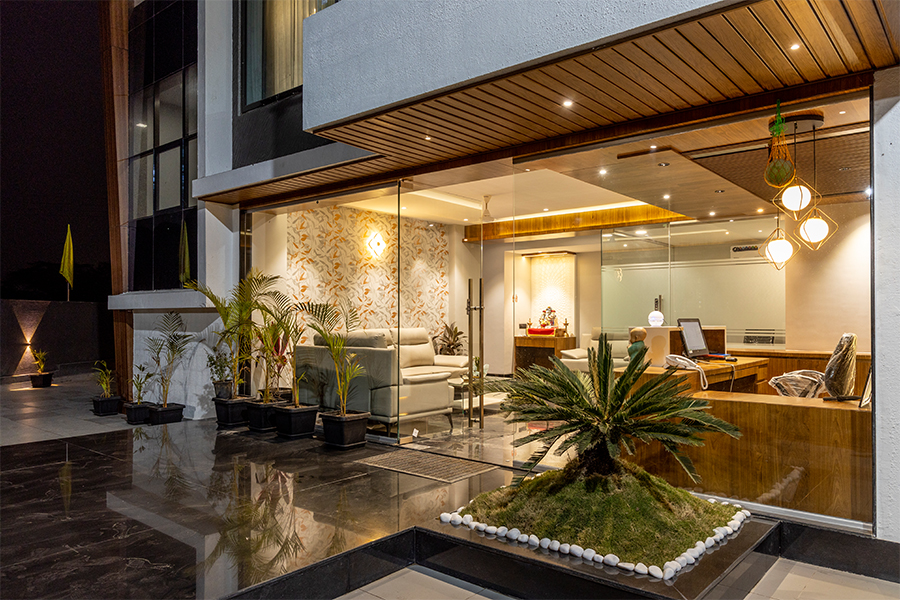 Welcome to Hotel The Sky Court, the perfect destination for a memorable stay near railway station in Rajnagar, MIDC, Aurangabad, Maharashtra. Our hotel offers modern amenities like garden, parking, fire alarm, elevator, security, 24h lobby, power backup,